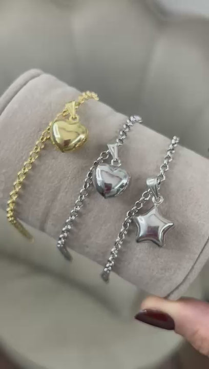 BRACCIALE CON STELLA O CUORE BOMBATO PENDENTE IN ARGENTO 925