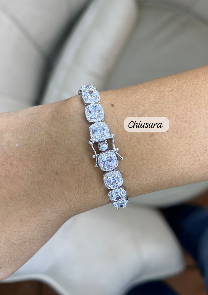 BRACCIALE TENNIS IN ARGENTO 925 CON PIETRE QUADRATE CUBIC ZIRCONIA