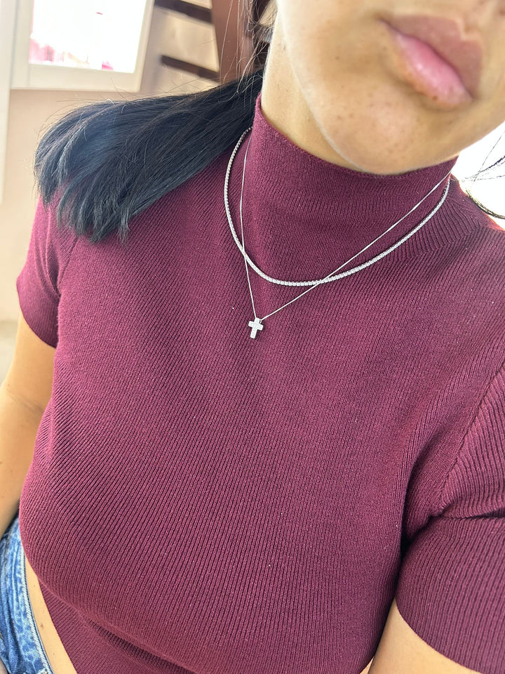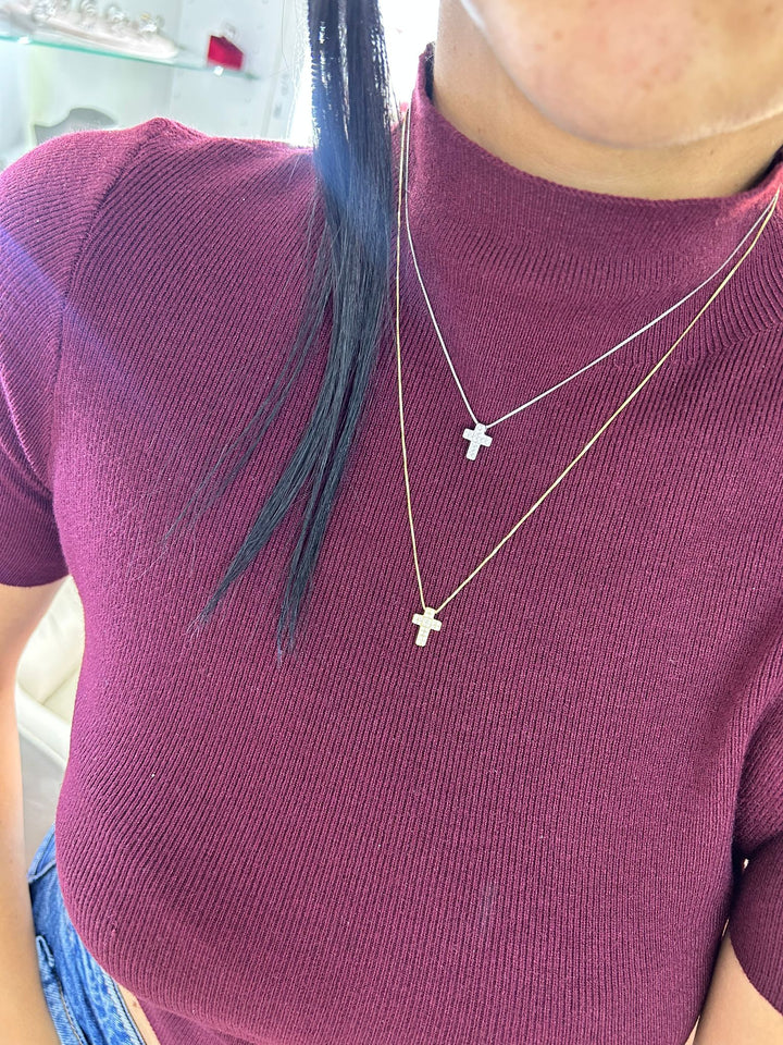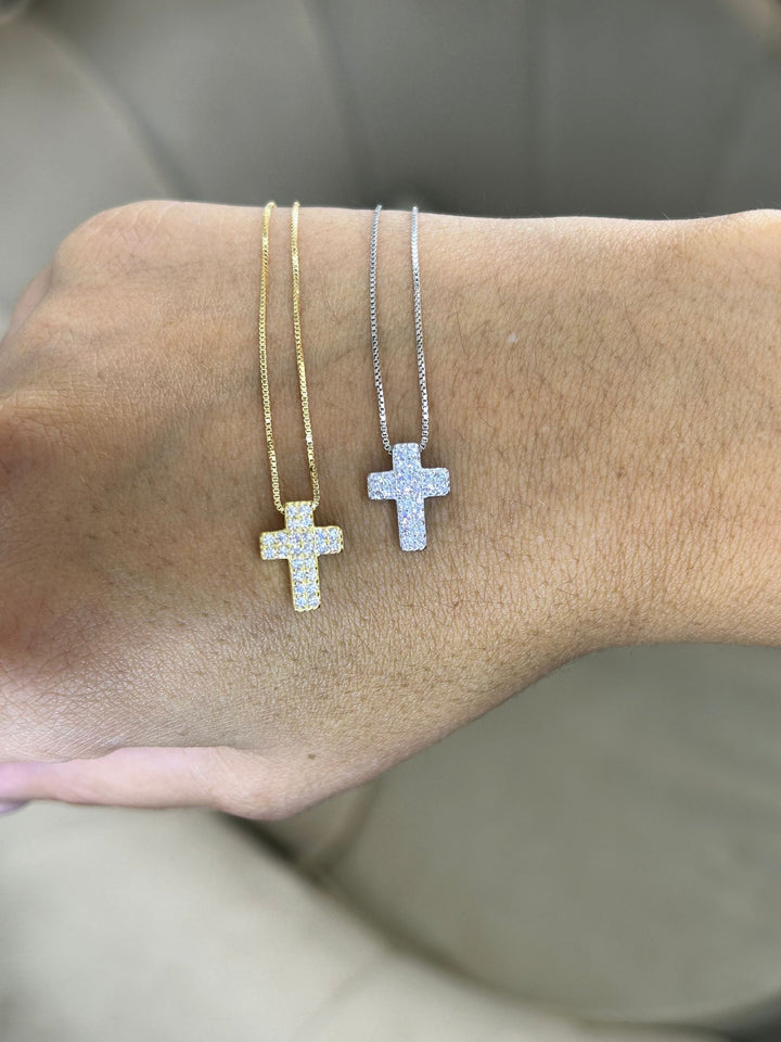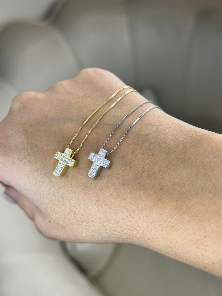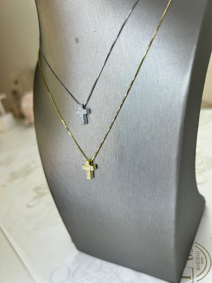 COLLANA CROCE SCATOLATA MINI IN ARGENTO 925 CON PIETRE CUBIC ZIRCONIA