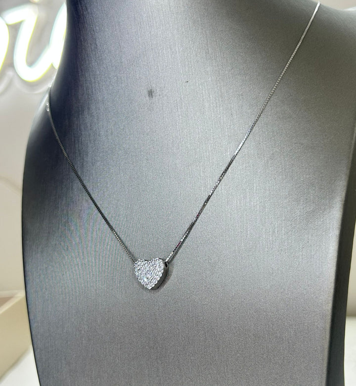 COLLANA CUORE PAVE' MEDIUM IN ARGENTO 925 REALIZZATA A MANO