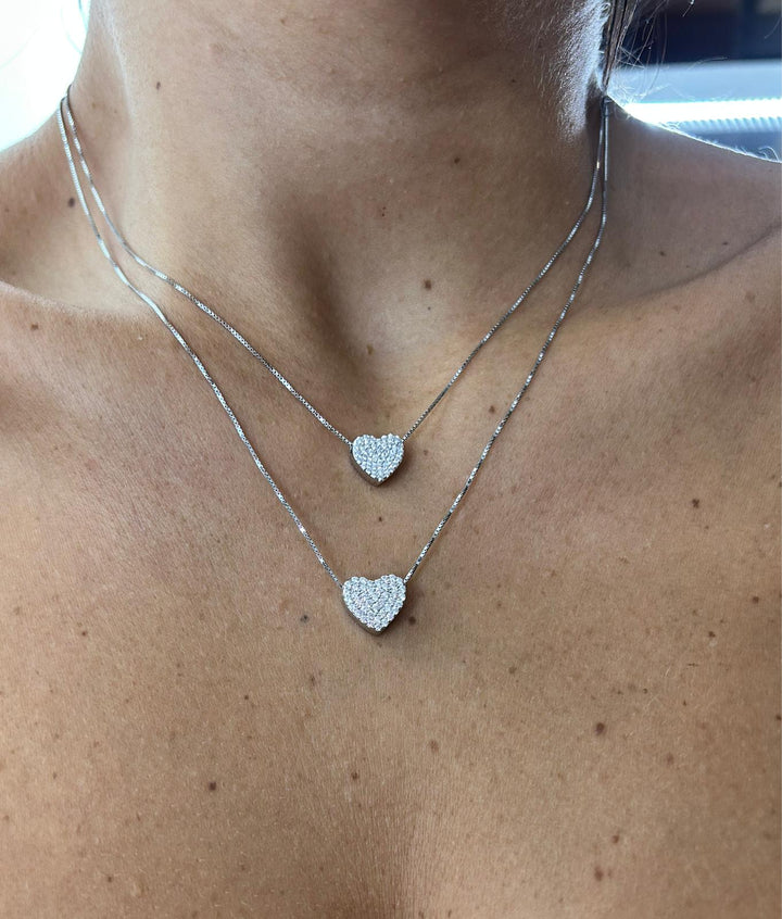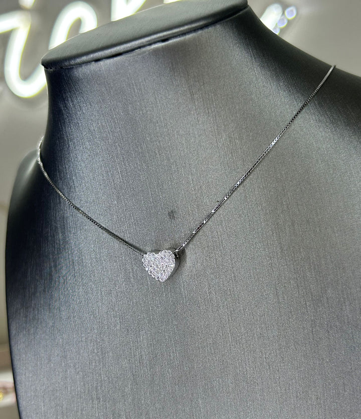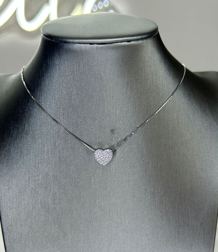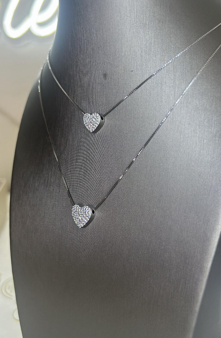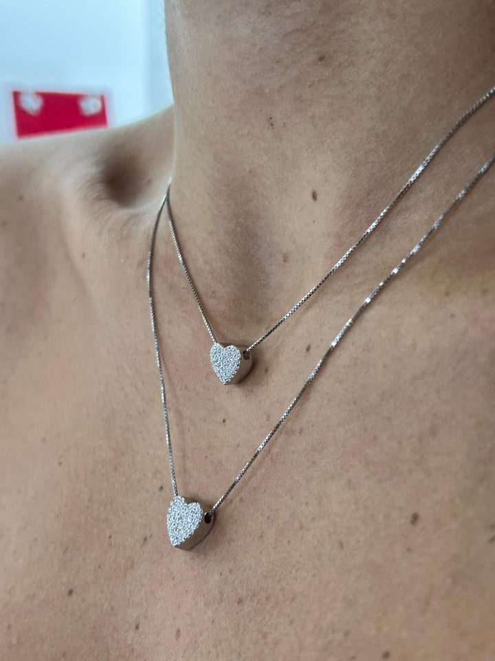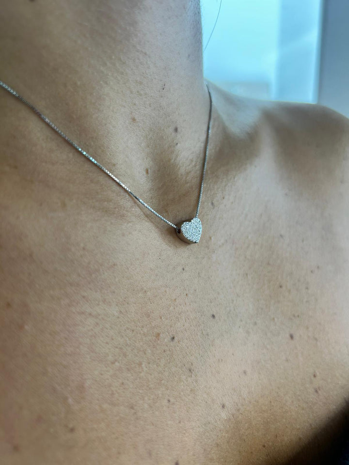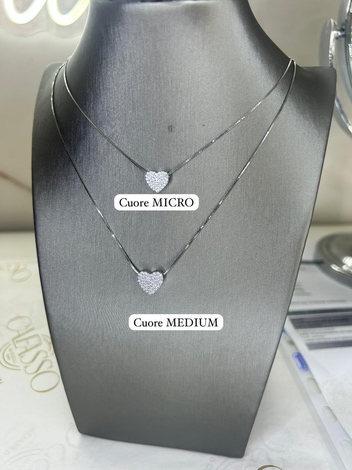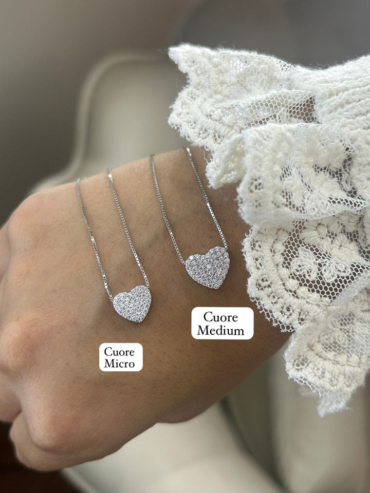 COLLANA CUORE PAVE' MICRO IN ARGENTO 925 REALIZZATA A MANO