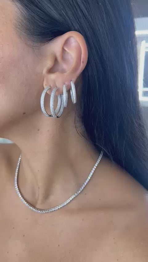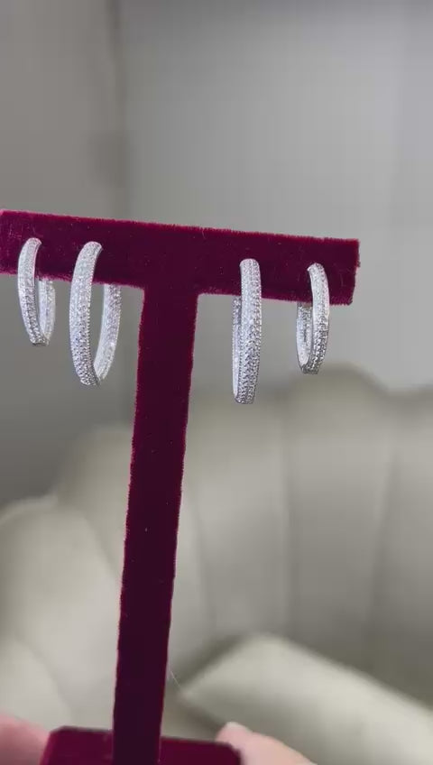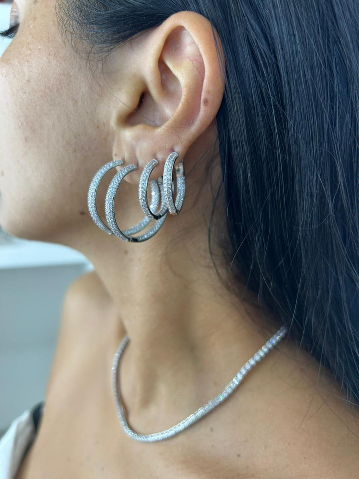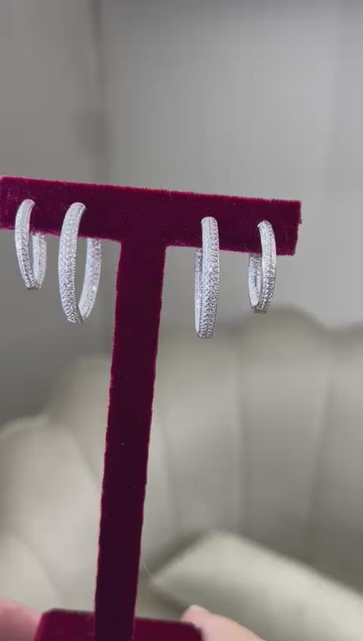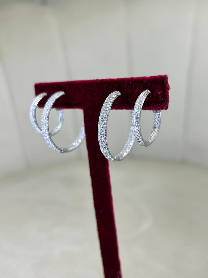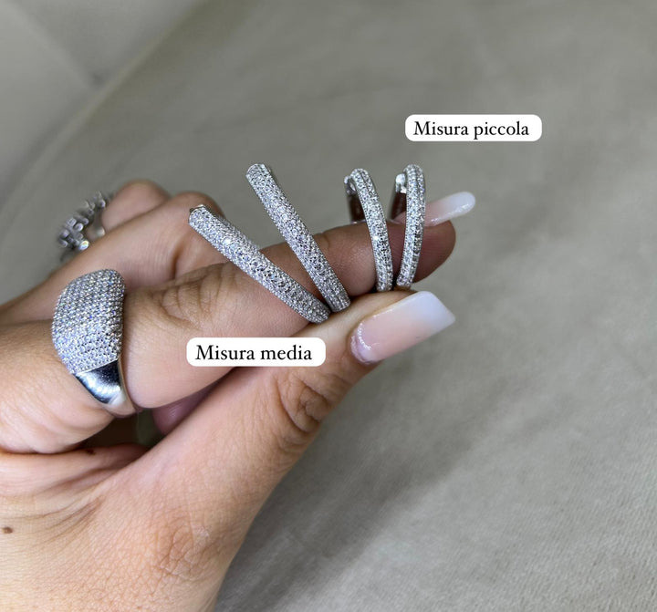 ORECCHINI CERCHI BOMBATI DUE MISURE DISPONIBILI CON PIETRE CUBIC ZIRCONIA SIA ESTERNE CHE INTERNE