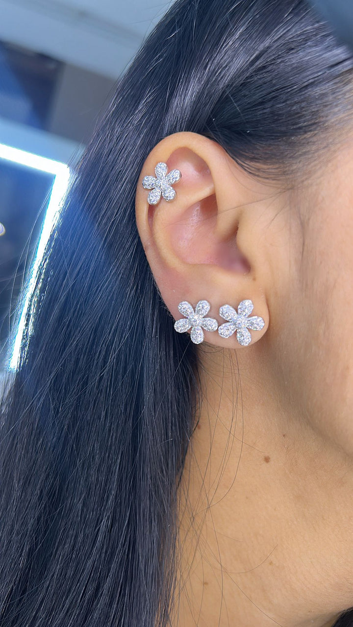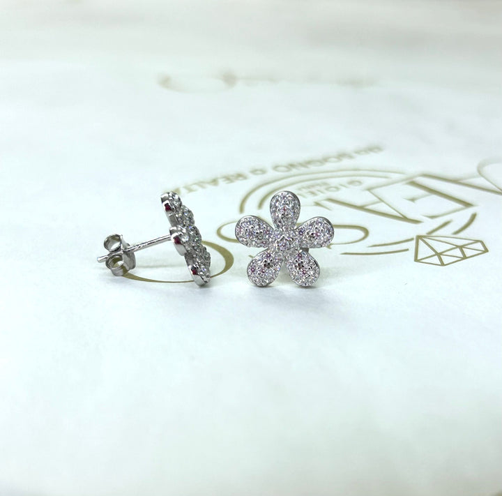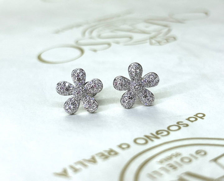 COPPIA ORECCHINI MODELLO FIORE IN ARGENTO 925 CON PIETRE CUBIC ZIRCONIA REALIZZATI A MANO