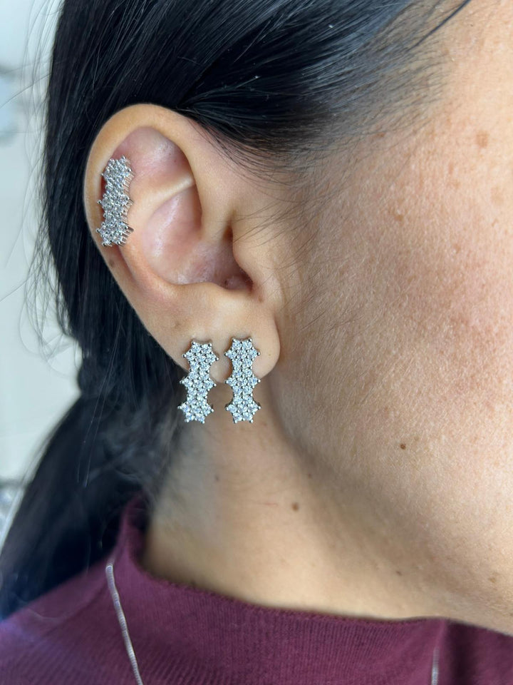 COPPIA ORECCHINI TRIS FLOWERS IN ARGENTO 925 CON PIETRE CUBIC ZIRCONIA